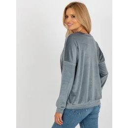 Špinavě modrá velurová mikina bez kapuce s výstřihem do V .