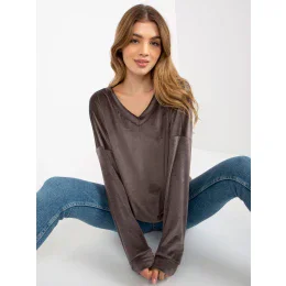 Tmavě šedá velurová mikina bez kapuce s výstřihem do V .