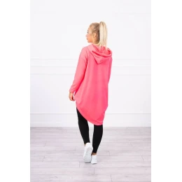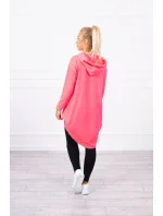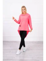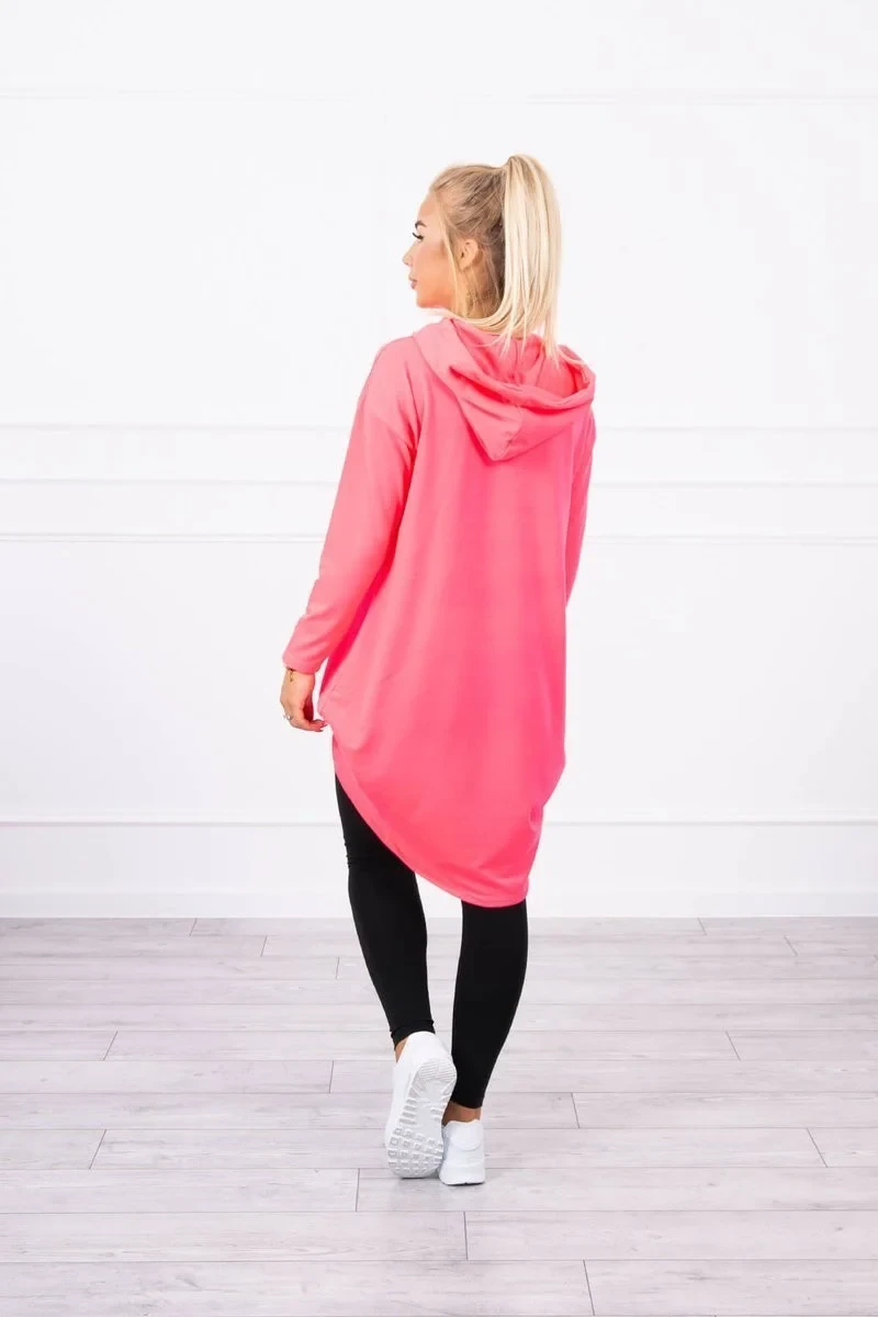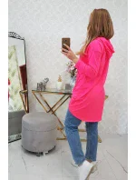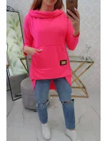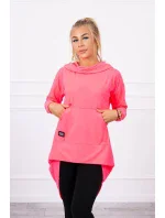Mikina s dlouhými zády a kapucí růžová neonová