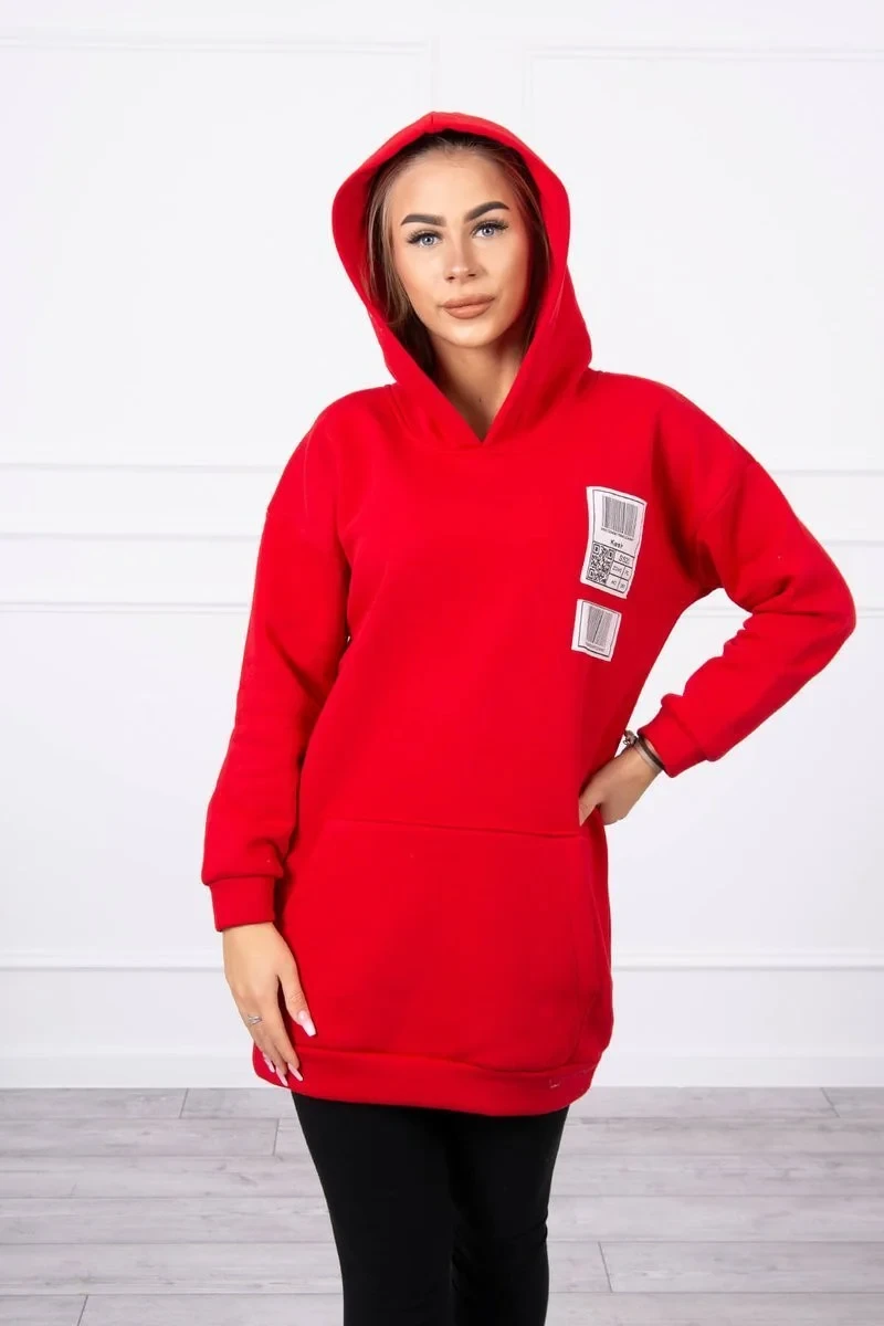 Mikina s kapucí a nášivkami červená