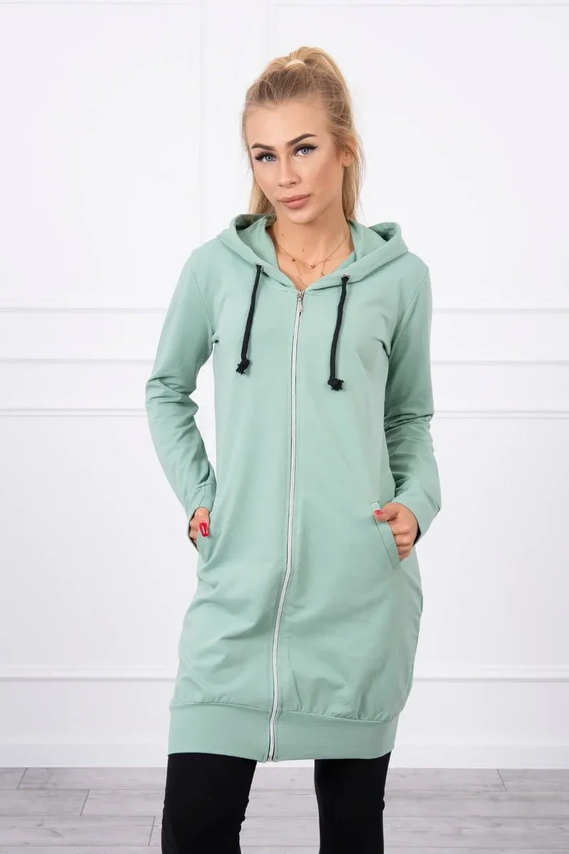 Představujeme vám pohodlnou dlouhou mikinu s kapucí. Mikina má zapínání na zip. Mikina je vyrobena z vysoce kvalitního materiálu. Velikost je univerzální a vyhovuje dámám, které nosí velikost S, M nebo L.