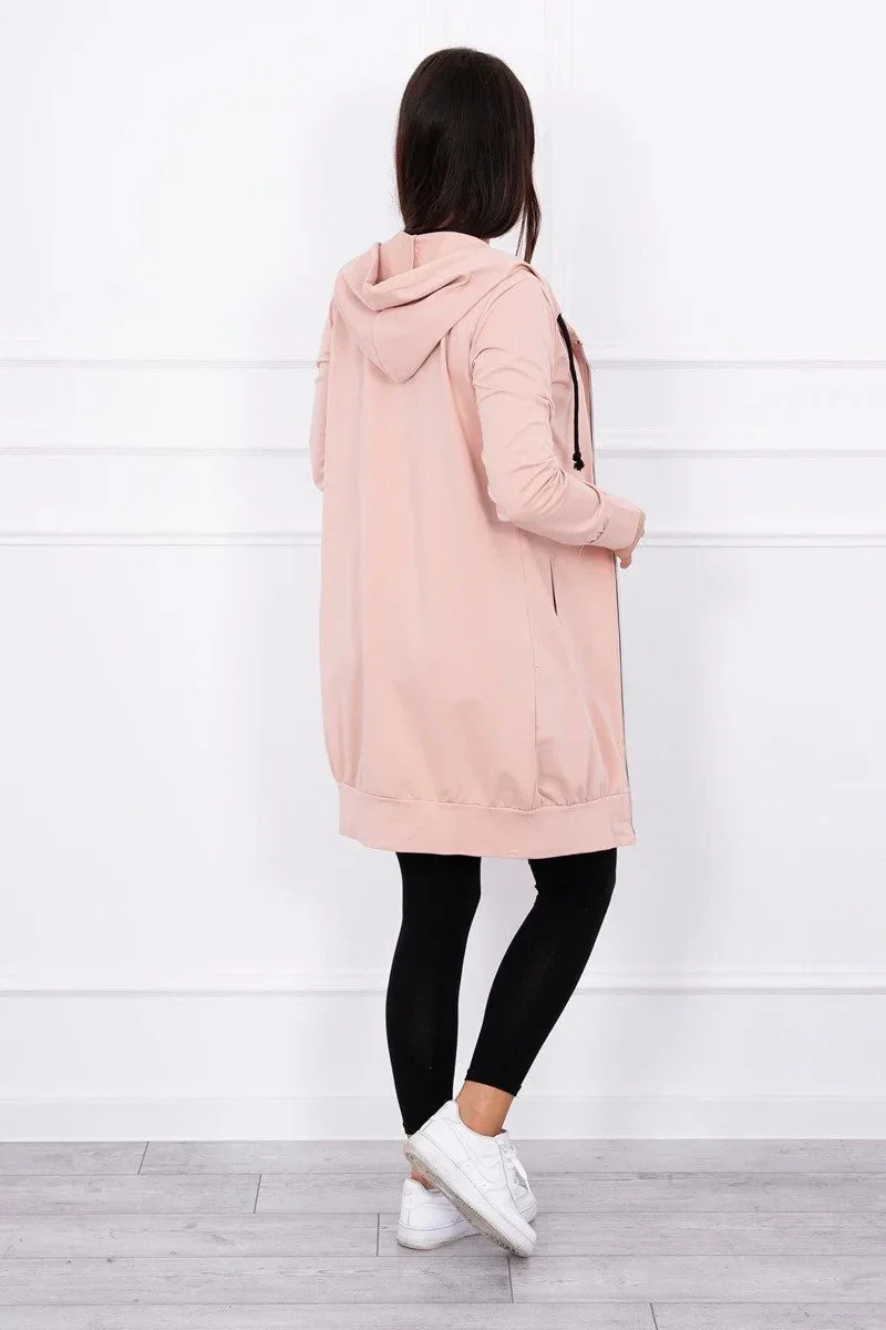 Představujeme vám pohodlnou dlouhou mikinu s kapucí. Mikina má zapínání na zip. Mikina je vyrobena z vysoce kvalitního materiálu. Velikost je univerzální a vyhovuje dámám, které nosí velikost S, M nebo L.