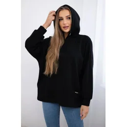 - Střih: delší mikina s kapucí, šňůrkou a zipem