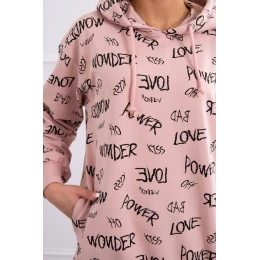 Mikina s nápisy tmavě pudrově růžová