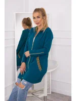 Představujeme vám pohodlnou dlouhou mikinu s kapucí. Mikina má zapínání na zip a ozdobné stuhy na kapsách a kapuci. Mikina je vyrobena z vysoce kvalitního materiálu. Velikost je univerzální a vyhovuje dámám, které nosí velikost S, M nebo L.