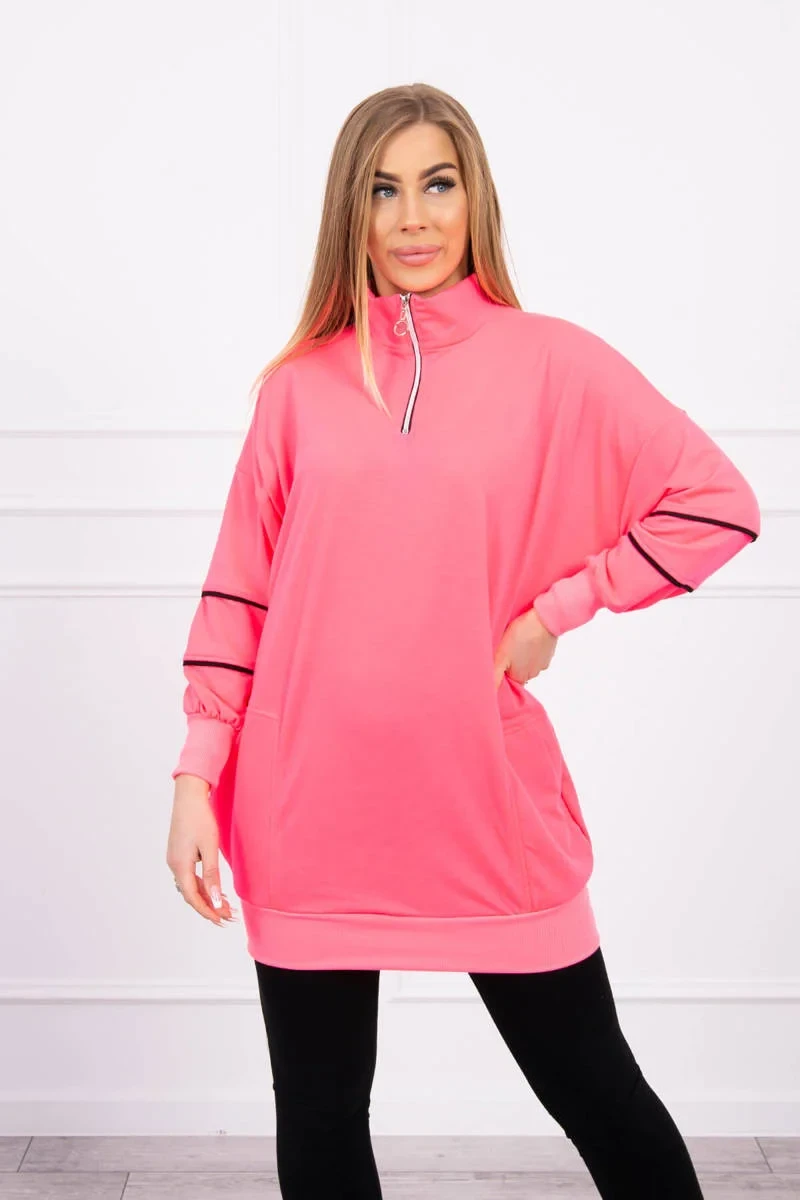 Mikina se zipem a kapsami růžová neonová