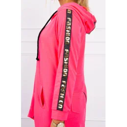 Představujeme vám pohodlnou dlouhou mikinu s kapucí. Mikina má zapínání na zip a další zip na zádech. Kapsy na bocích a dvě ozdoby na zadní straně. Mikina má našité stuhy s nápisem fashion. Mikina je vyrobena z vysoce kvalitního materiálu. Velikost je univerzální a vyhovuje dámám, které nosí velikost S, M nebo L.