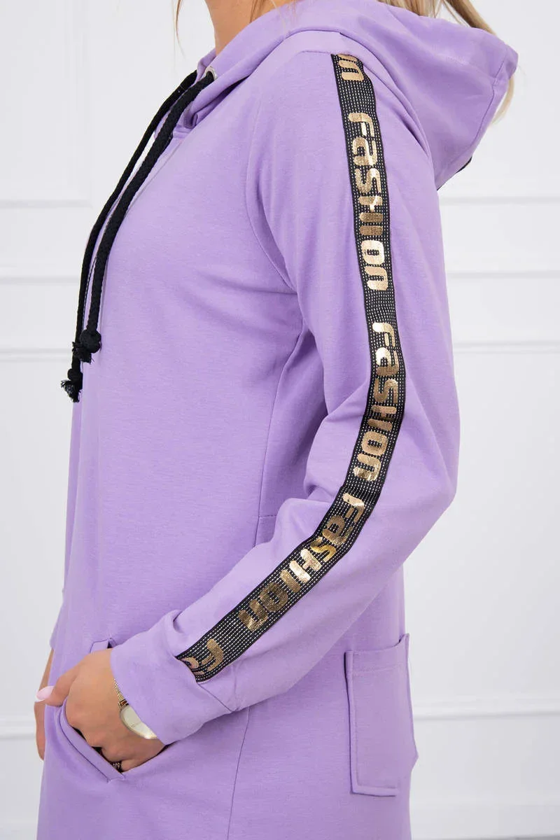 Představujeme vám pohodlnou dlouhou mikinu s kapucí. Mikina má zapínání na zip a další zip na zádech. Kapsy na bocích a dvě ozdoby na zadní straně. Mikina má našité stuhy s nápisem fashion. Mikina je vyrobena z vysoce kvalitního materiálu. Velikost je univerzální a vyhovuje dámám, které nosí velikost S, M nebo L.
