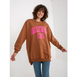 Světle hnědá a růžová dlouhá oversize mikina s nápisy .