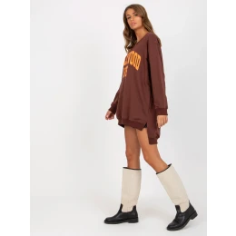 Tmavě hnědá a oranžová dlouhá mikina oversize s nápisy .