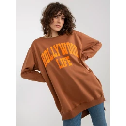 Světle hnědá a oranžová dlouhá mikina s nápisem .