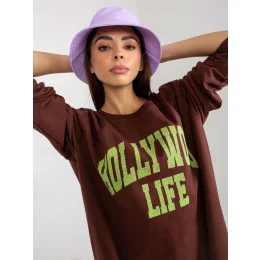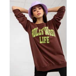 Tmavě hnědá a zelená dlouhá oversize mikina s nápisy .