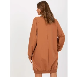 Světle hnědá dlouhá mikina nadměrné velikosti s aplikací a nápisy .