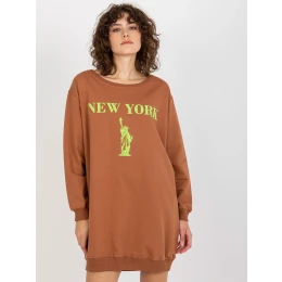 Světle hnědá a zelená dlouhá oversize mikina s potiskem .