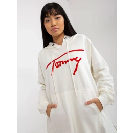 Volná mikina klokanka s nápisy a kapucí v barvě ecru .