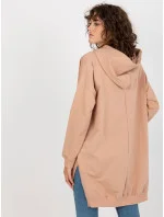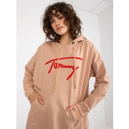 Béžová dlouhá klokaní mikina s kapucí a nápisem .