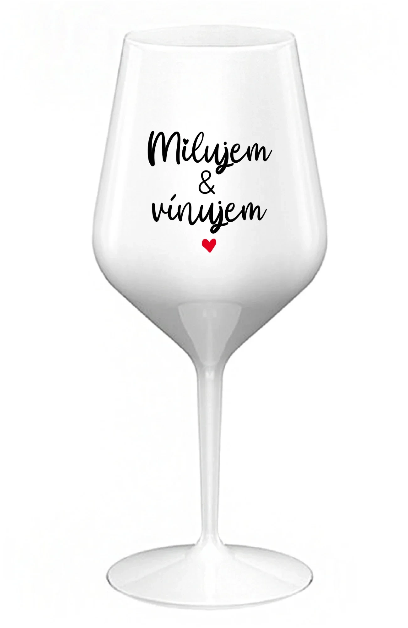 MILUJEM & VÍNUJEM - biely nerozbitný pohár na víno 470 ml