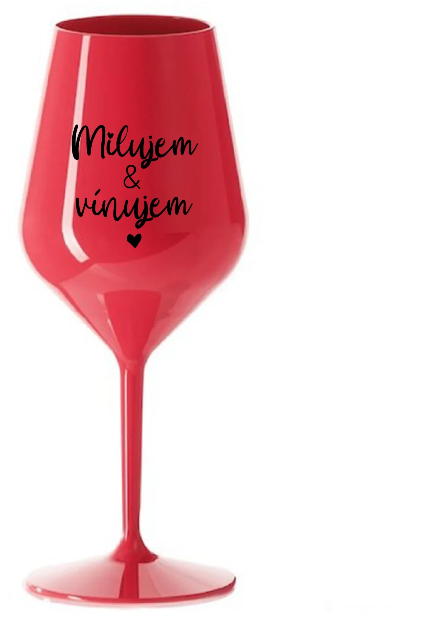 MILUJEM & VÍNUJEM - červený nerozbitný pohár na víno 470 ml