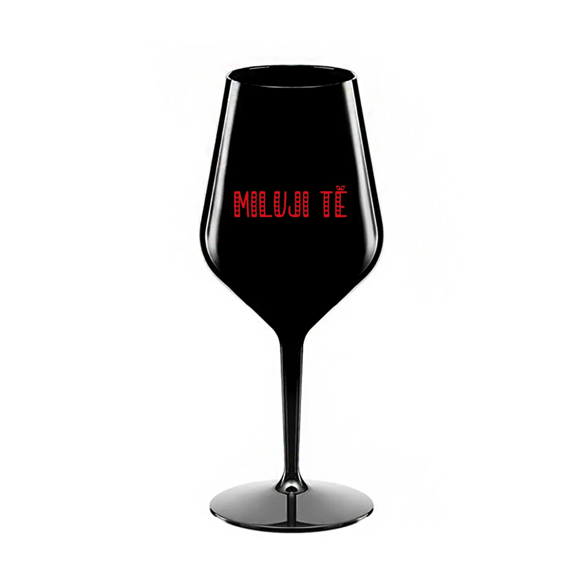 MILUJI TĚ - černá nerozbitná sklenice na víno 470 ml
