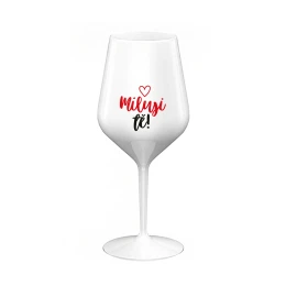 MILUJI TĚ! (SRDÍČKO) - bílá nerozbitná sklenice na víno 470 ml