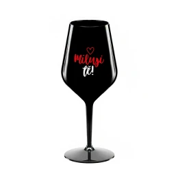 MILUJI TĚ! (SRDÍČKO) - černá nerozbitná sklenice na víno 470 ml