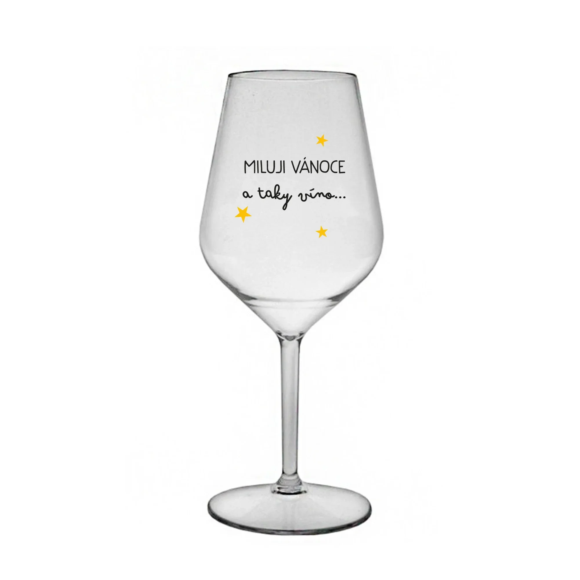 MILUJI VÁNOCE A TAKY VÍNO - čirá nerozbitná sklenice na víno 470 ml