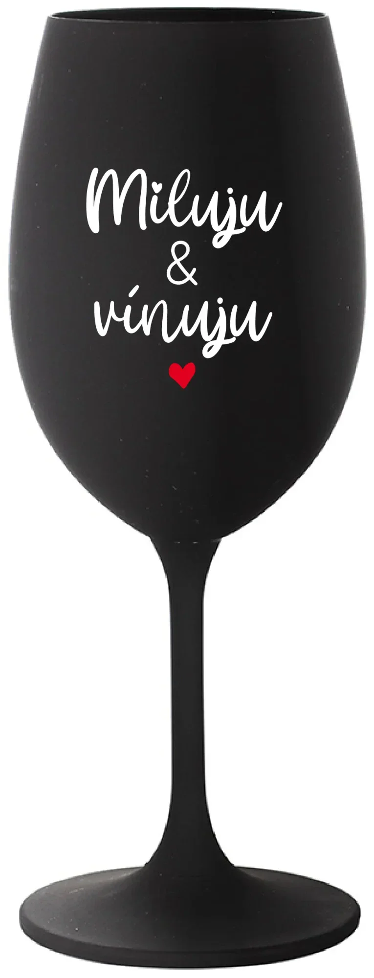 MILUJU & VÍNUJU - černá sklenice na víno 350 ml