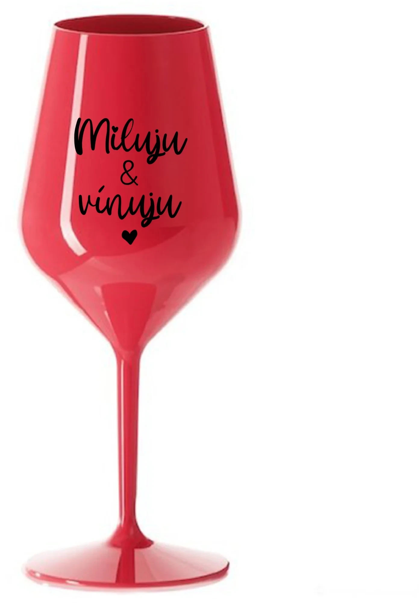 MILUJU & VÍNUJU - červená nerozbitná sklenice na víno 470 ml