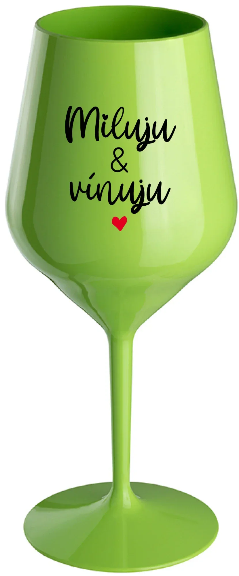 MILUJU & VÍNUJU - zelená nerozbitná sklenice na víno 470 ml