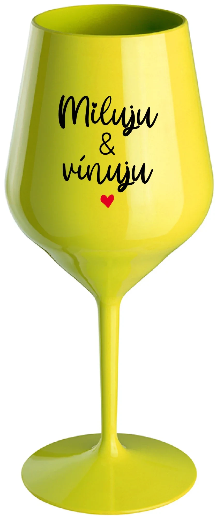 MILUJU & VÍNUJU - žlutá nerozbitná sklenice na víno 470 ml