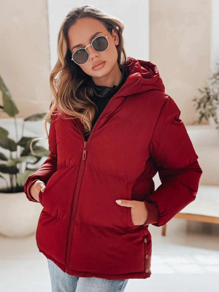 MISSFROST dámská prošívaná bunda s kapucí bordó FashionStreet TY4960