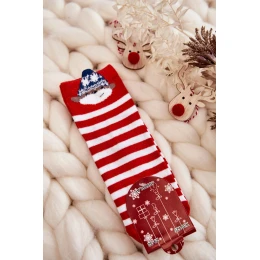 Mládež Pruhované Ponožky S Medvědem červene S Bílým