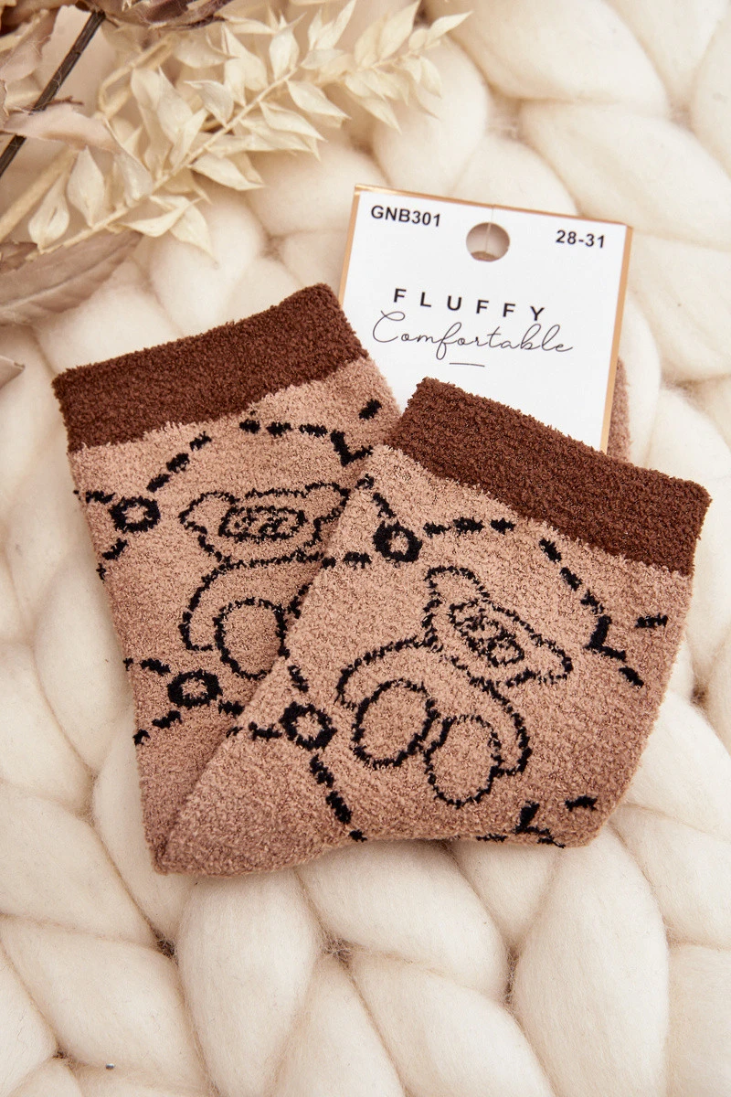 Mládežnické teplé ponožky s medvědem hnědé