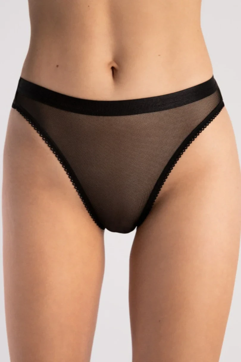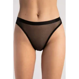 Smyslné průhledné kalhotky klasického střihu s vysokým sedem. Hygienický bavlněný klínek pro větší pohodlí.
