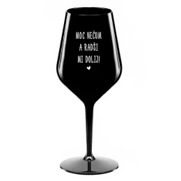 Nerozbitná černá vinná sklenice s motivem MOC NEČUM A RADŠI MI DOLIJ! je skvělá na zahradu, pláž, výlet, piknik a parádu udělá i při kempování. Jelikož je vyrobená z kvalitního polykarbonátu je de facto nerozbitná. Je to luxusní kousek, s nímž si víno můžete vychutnat prostě kdekoliv. Mají ergonomický tvar, který příjemně padne do ruky a protože je lehká, usnadňuje to její přenášení. Je snadno skladovatelná a lehce se čistí. Díky svému designu si s ní můžete vychutnat doopravdy kdekoliv bezproblémové pití výborného vína.