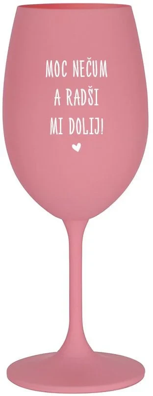 MOC NEČUM A RADŠI MI DOLIJ! - růžová sklenice na víno 350 ml