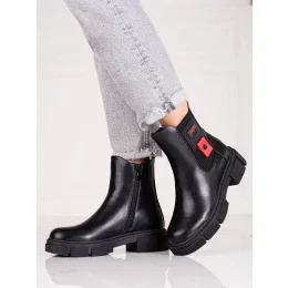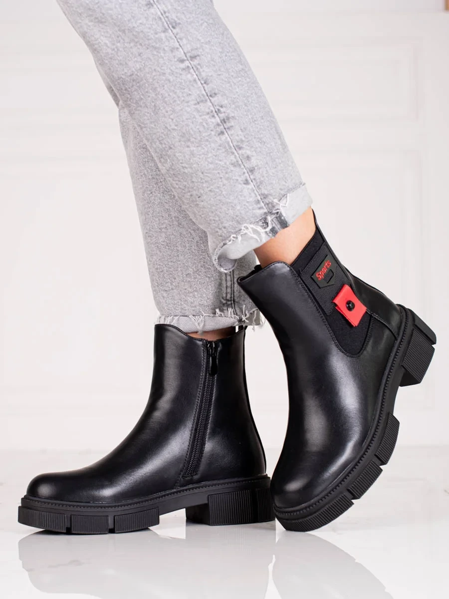 Moderní dámské černé kotníčkové boty na plochém podpatku