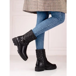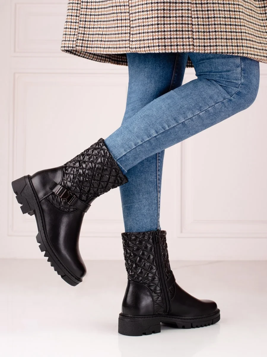 Moderní dámské kotníčkové boty černé na plochém podpatku