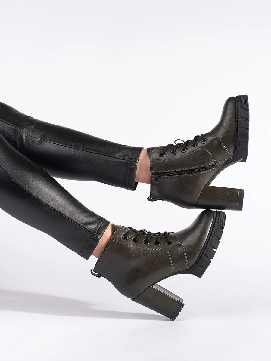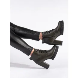 Moderní dámské kotníčkové boty zelené na plochém podpatku