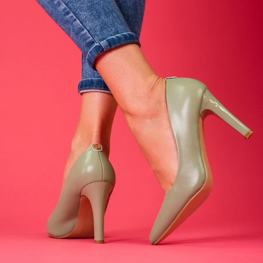 Moderní dámské zelené lodičky na jehlovém podpatku