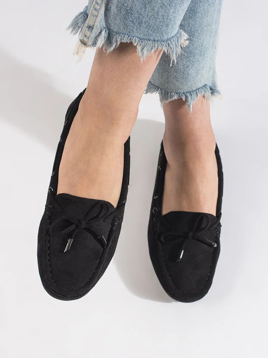 Moderní mokasíny černé dámské bez podpatku