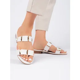 Módní dámské bílé nazouváky na plochém podpatku