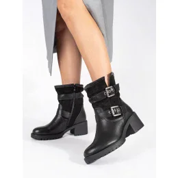 Módní dámské černé kotníčkové boty na širokém podpatku