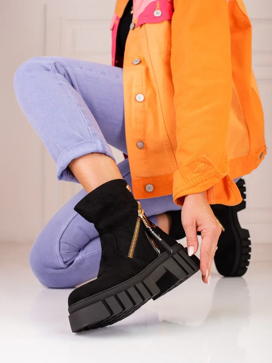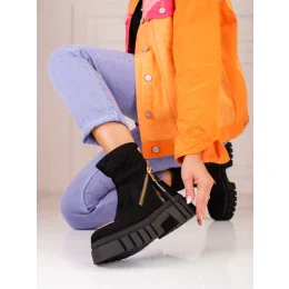 Módní kotníčkové boty černé dámské na plochém podpatku
