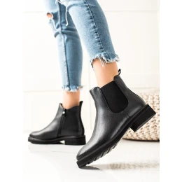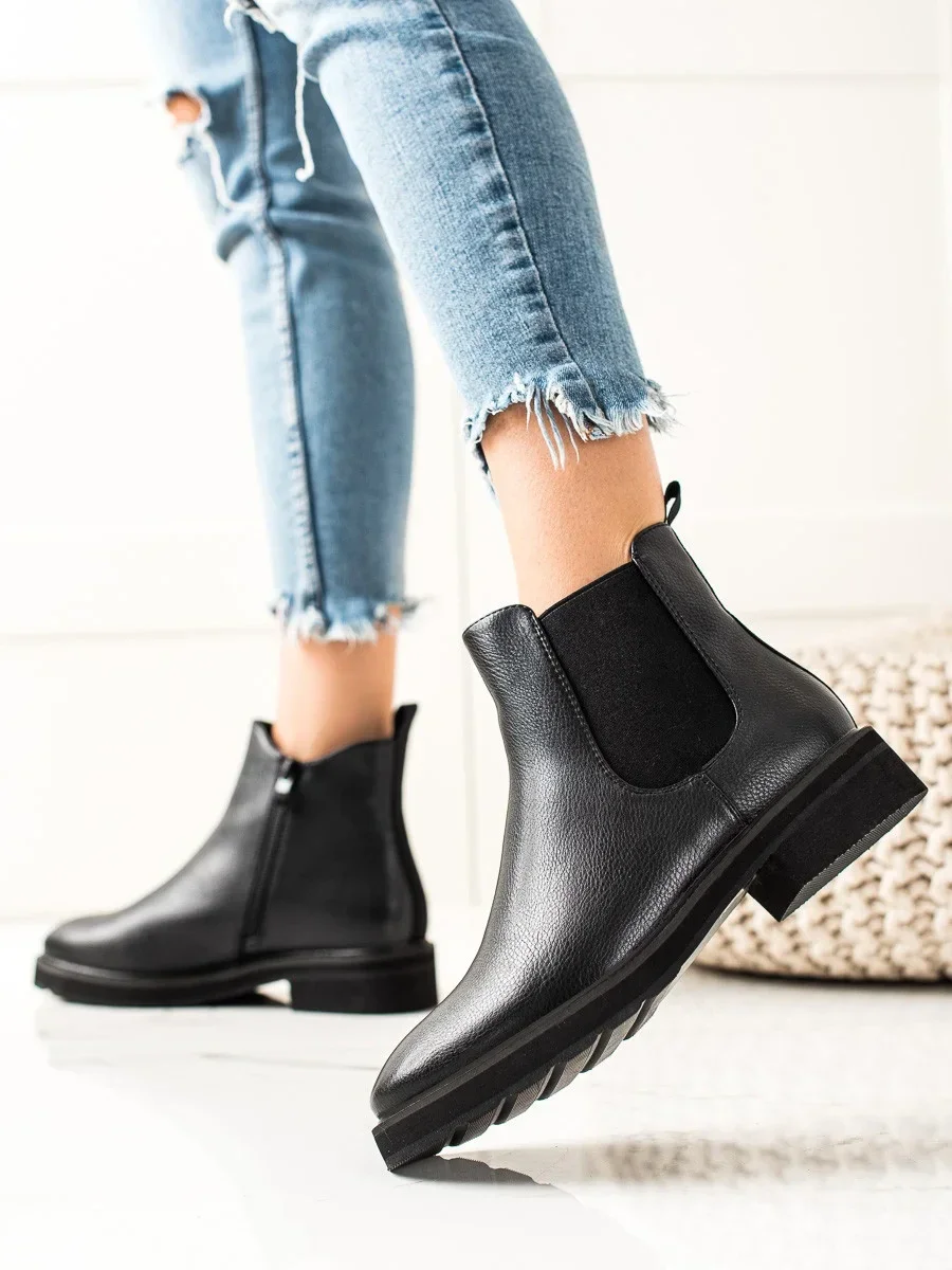Módní kotníčkové boty dámské černé na plochém podpatku