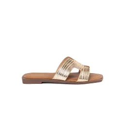 Dámské sandály na plochém podpatku s ozdobným detailem KV51-007 zlaté