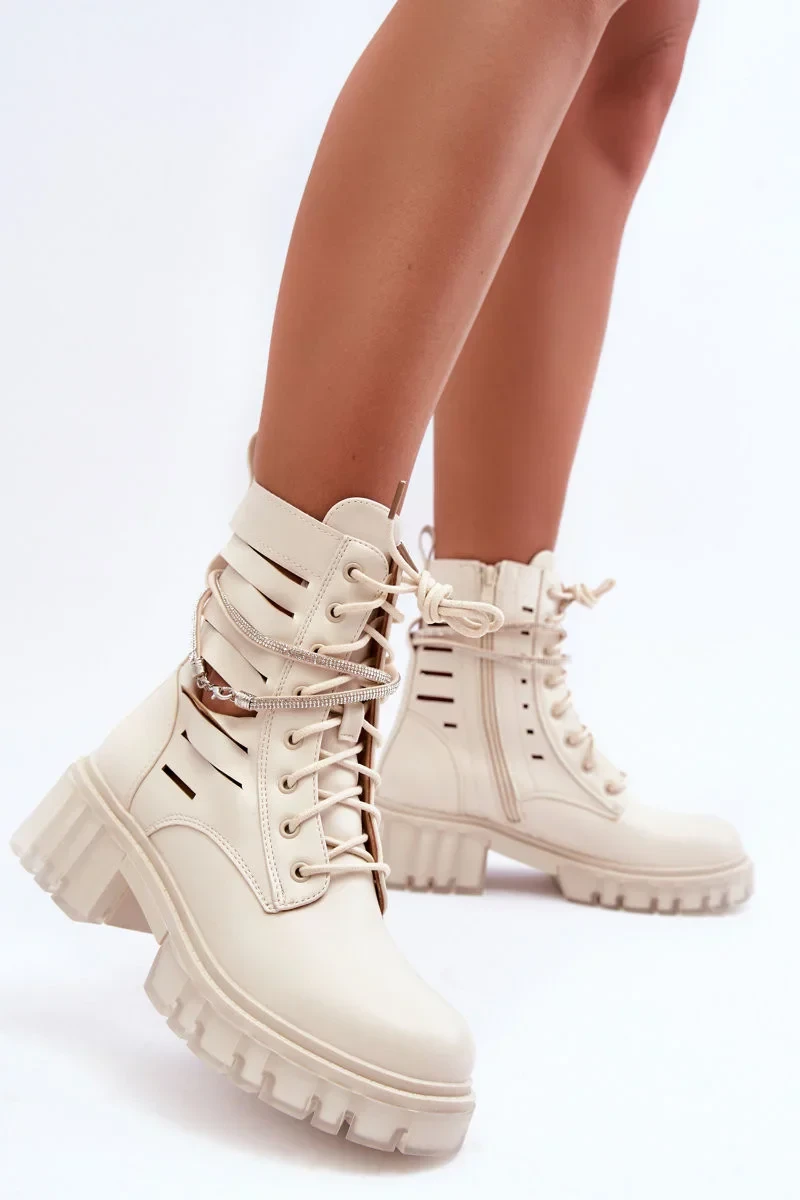 Módní pracovní boty s ozdobným páskou Bežové Rocky