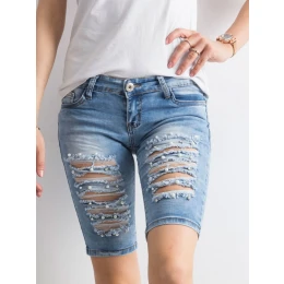 Džínové bermudy s dírami v modré barvě.