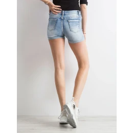 Modré džínové šortky s potiskem.