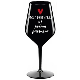 MOJE PARTNERKA MÁ PRÍMA PARTNERA - černá nerozbitná sklenice na víno 470 ml